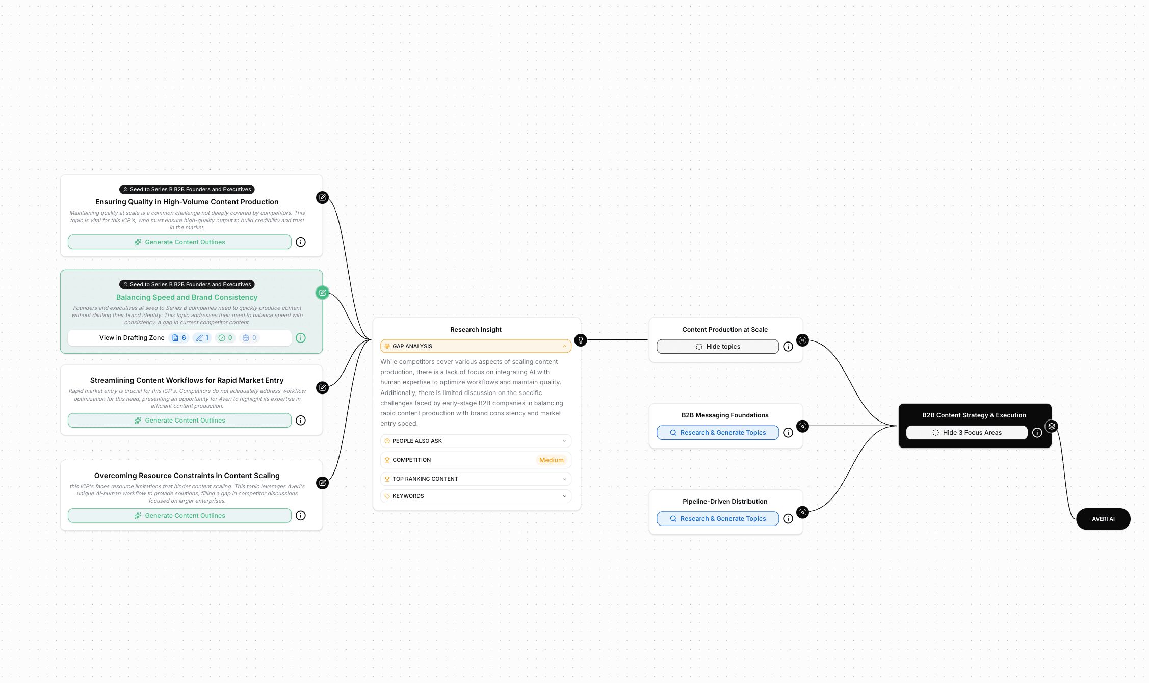 Content engine with analytics integration. Averi connects Google Analytics and Search Console data directly to our content library. We can see which pieces drive the most Google traffic, which earn AI citations, and (by inference from the self-reported data) generate the most dark social sharing. The content that performs best across all three surfaces gets more investment. The content that only performs on one gets optimized or deprioritized.