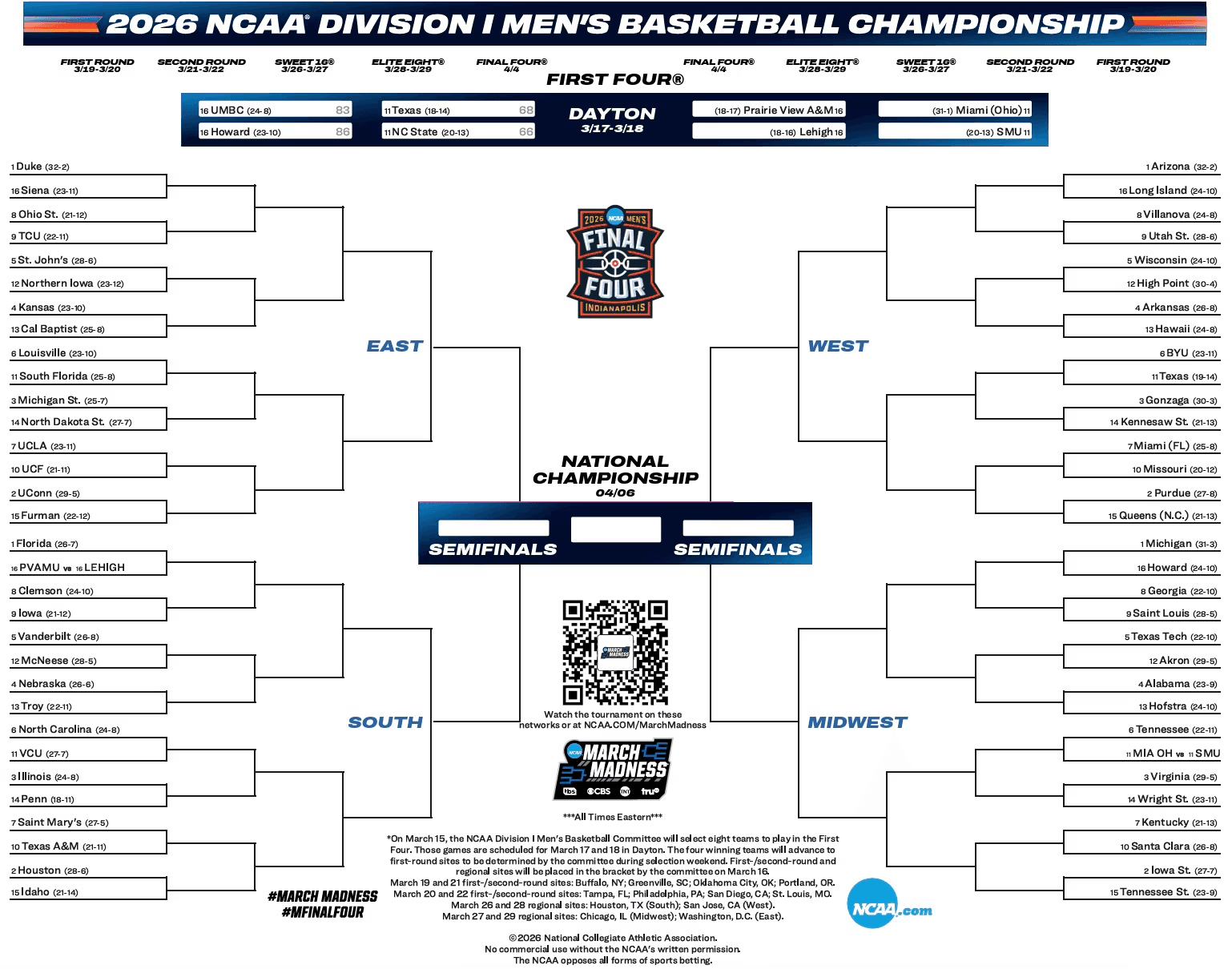 The tournament starts today. Sixty-eight teams. Sixty-three games. Millions of brackets.
