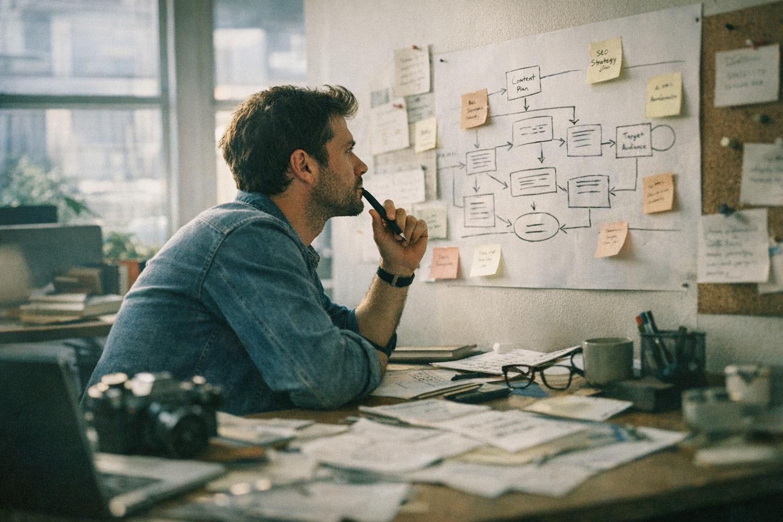 Start by defining 3–5 brand pillars and crafting a contrarian perspective through a focused stakeholder session [3]. Develop a three-phase workflow that includes research, structured briefs, and quality control. Use AI for tasks like topic generation, drafting, and automation. Track essential metrics, such as visibility indicators that tie directly to conversions and lead quality rather than sheer volume. To ensure consistency, implement a QA checklist for every piece of content [5]. These steps lay the groundwork for a streamlined, scalable content strategy.